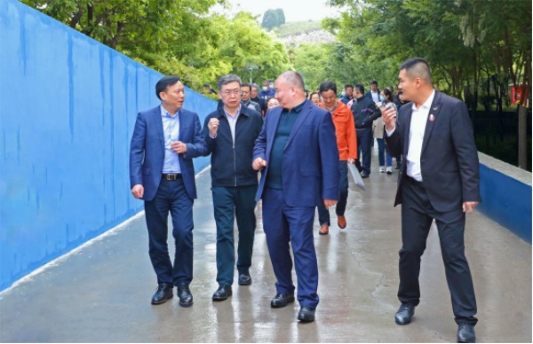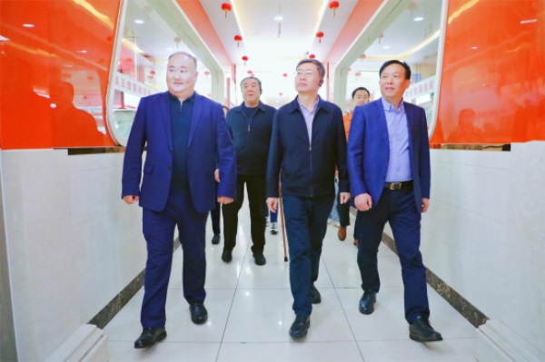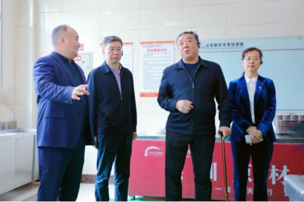 中国残联教育就业部副主任、一级巡视员解宏德(左三),中国残联就业服务指导中心副主任涂强根(左四),山东省残联党组成员、副理事长冯雷(左二)莅临山东新东方技工学校参观考察第七届全国残疾人职业技能大赛赛事筹备情况,山东新东方技工学校校长王健(左一)陪同考察