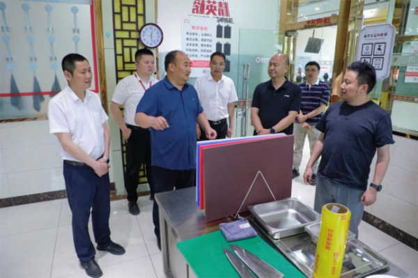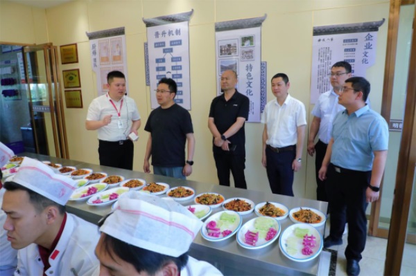 商河县政府领导一行在我校领导的陪同下,了解我校近年来办学成果,先后参观了中餐专业学生击鼓翻锅特色技能表演、产教融合实训基地、爱立颂校内实体店、舜和国际酒店实训群、管培生实训群,并对我校课程设置、师资力量、实训课堂等教育教学情况给予了充分的肯定。