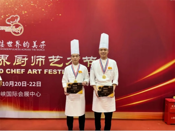 10月18日至22日, 在第32届中国厨师节开幕的同时,“首届全国西餐烹饪技能总决赛”也在福州鸣锣开赛。来自全国20多个省、自治区、直辖市的35支队伍展开激烈角逐,最终新东方高级技工学校杨萧剑、王志伟凭借扎实的功底和精湛的技艺,荣获金奖!费勤民老师荣获“优秀指导教师”称号!