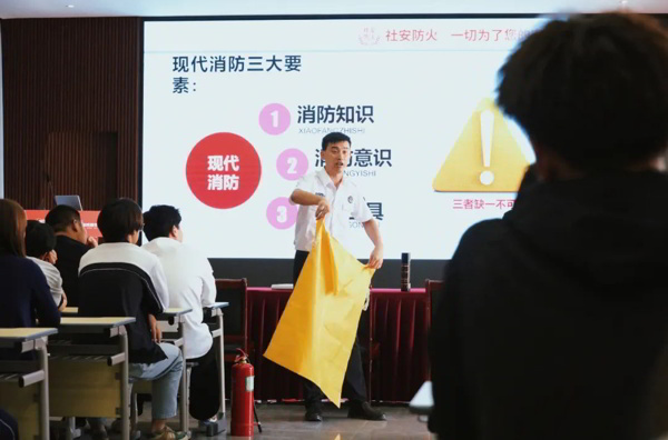 讲座上,教官从火灾的种类、火灾事故的预防和发生火灾后的应对方法等消防安全知识出发,让台下的师生对消防安全知识有了全面了解。通过播放一系列典型火灾视频案例,生动地讲述了火灾的危害性,并对火灾形成的原因进行剖析,强调了火灾的突发性和灭火自救的重要性,以此来敲响大家心中消防安全的警钟。